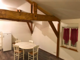 Au deuxième étage, un loft avec poutres apparentes offre un espace de vie de 29 m² comprenant une salle à manger, une chambre de 10,68 m² , un wc de 1,15 m² , un coin cuisine de 5,58 m² équipée avec une plaque de cuisson deux feux et un réfrigérateur, ainsi qu’une salle d’eau de 3,85 m² composée d’une douche et d’un meuble une vasque. Le charme des poutres apparentes confère à cet espace un caractère authentique et chaleureux.