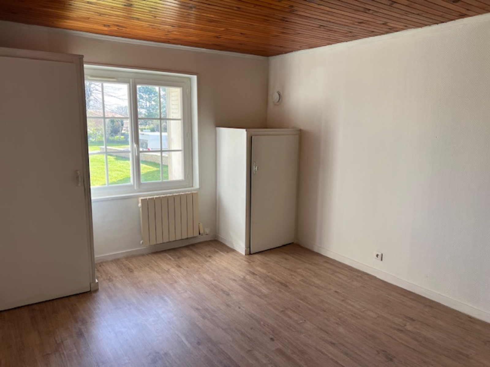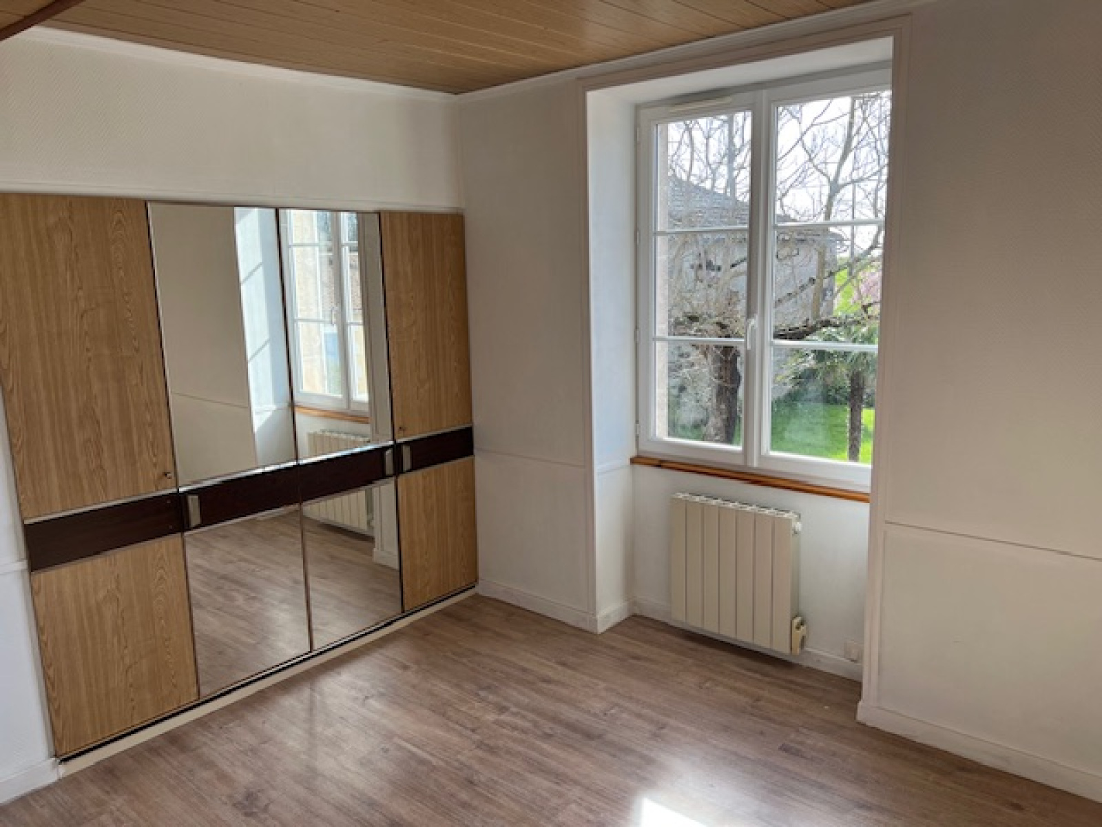 À l’étage, un palier de 3,21 m² (parquet flottant) distribue trois chambres de 10,77 m², 16,26 m² et 10 m², dont deux avec placards de rangement. Vous trouverez également un WC indépendant et une salle de bains de 7,40 m² composée d’une baignoire et d’un meuble une vasque, ainsi qu’un placard de rangement.