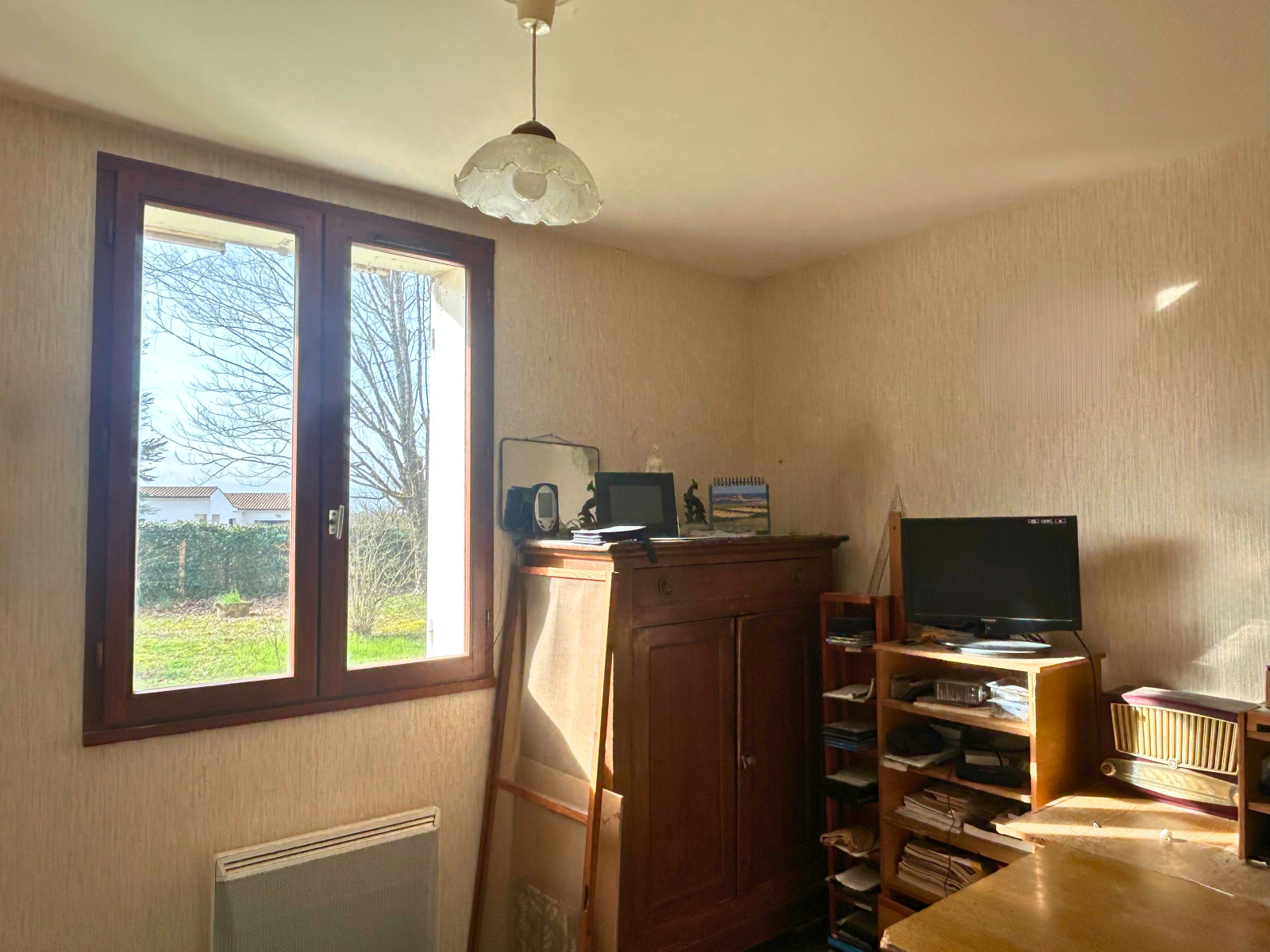 Ce pavillon offre une organisation fonctionnelle et des volumes équilibrés, parfaitement adaptés à une résidence principale. L’entrée sous véranda de 3,42 m² constitue un espace tampon appréciable en toute saison. Elle s’ouvre sur une entrée de 6,19 m² avec placard-penderie, facilitant le rangement au quotidien.
