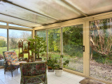 La cuisine de 11,45 m² est aménagée et équipée d’une hotte, d’une plaque de cuisson mixte comprenant deux feux vitrocéramique et deux feux gaz Butane, ainsi que d’un four. Le séjour de 30,30 m² propose un espace de vie convivial et lumineux, idéal pour recevoir famille et amis. Il se prolonge par une véranda de 20 m², véritable pièce supplémentaire permettant de profiter du jardin été comme hiver.