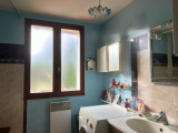 Un couloir dessert un wc indépendant, une salle de bains de 5,50 m² composée d’un meuble une vasque, d’une baignoire et d’un coin lingerie, ainsi que trois chambres de 9,75 m², 8,80 m² et 8,37 m². Un cellier de 7,27 m² vient compléter l’espace intérieur en offrant un rangement complémentaire très pratique.