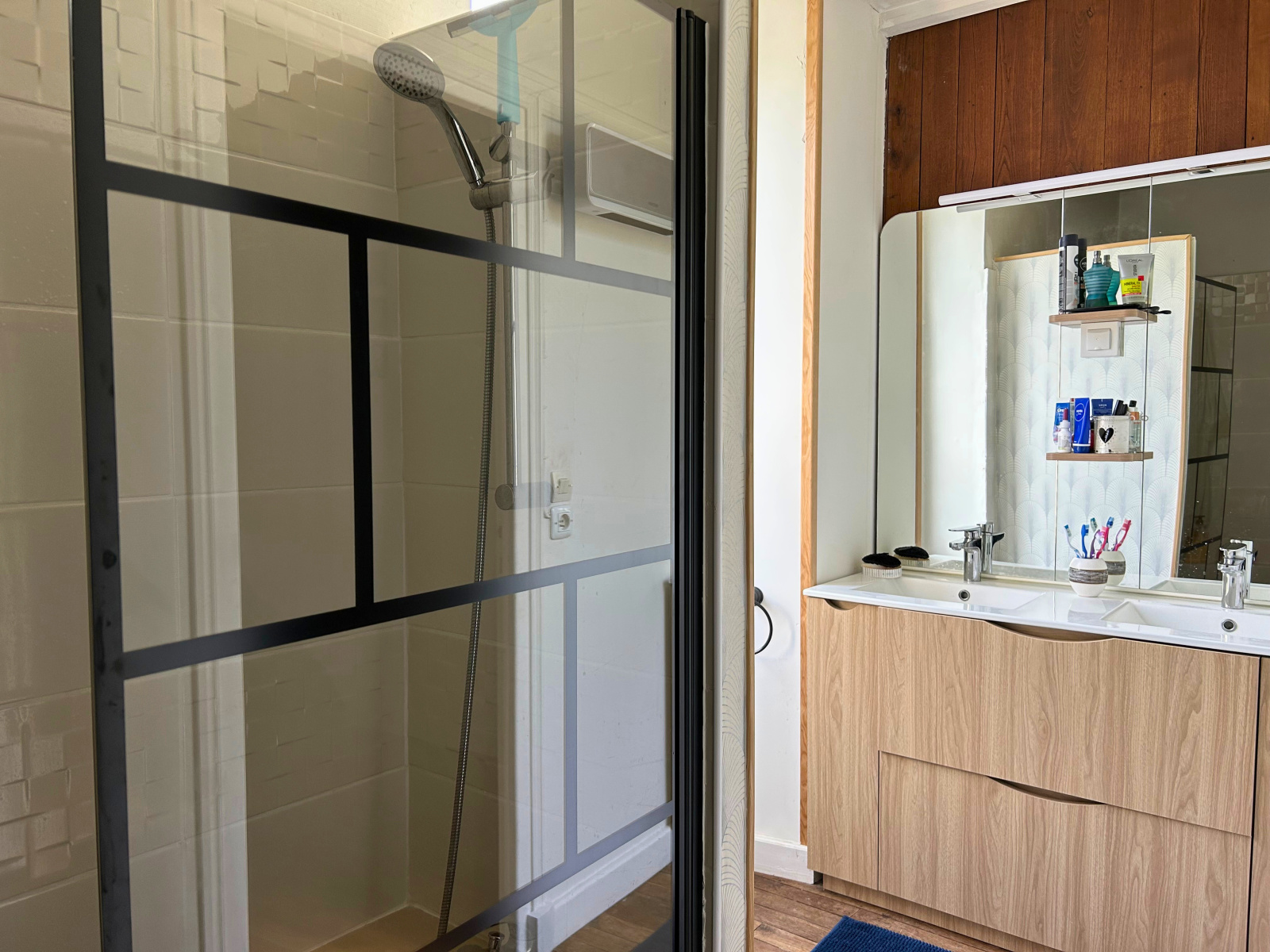 Àu premier étage, un palier distribue trois belles chambres dont une suite parentale avec dressing de 7 m². Une salle de bains avec baignoire et double vasque vient compléter ce niveau.